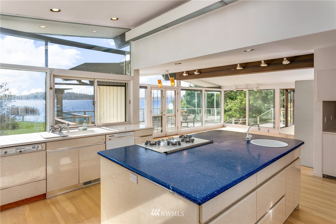 Exquisite southwest-facing, no-bank waterfront property on Medinas desirable Gold Coast welcomes you. Expansive level lot opens to 115 of water w/private beach & dock dramatic views across Lake Washington, from Mt. Rainier to the Seattle city skyline. Mid-century modern home, designed by Robert M Shields, awaits your personal updates; or bring your builder and create a masterpiece of your own. Ideal location just minutes to DT Bellevue and Seattle. Award-winning Bellevue school district.